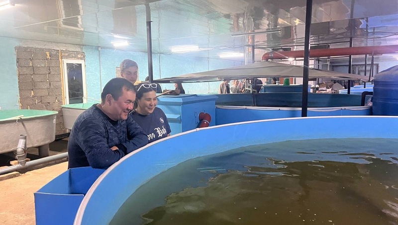 Следующая остановка агротуристов была в селе Началово на территории КФХ Аифа Ахмедова, где выращивают рыб осетровых пород. Фермер подробно рассказал о тонкостях разведения осетров, поделился планами развития хозяйства и показал строящуюся туристическую базу отдыха.