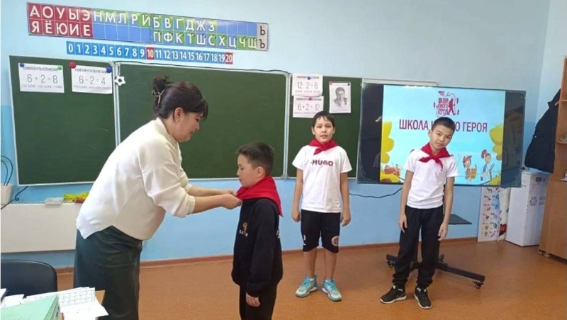 Самым захватывающим этапом мероприятия стал интерактивный блок «Школа юного героя», где ребята, разделившись на три команды и выбрав капитанов, продемонстрировали блестящую память, отвечая на сложные вопросы викторины. С азартом и внимательностью будущие герои разгадали ключевые слова в испытании «Шифровка». Кульминацией встречи стала торжественная церемония посвящения в пионеры. Три капитана, проявившие себя в командных испытаниях, первыми надели красные галстуки. Весь класс, стоя, произнес слова торжественного обещания.