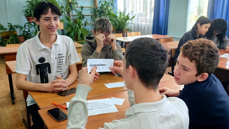 Ребята с азартом приняли участие в викторине, где смогли продемонстрировать свои знания. Они познакомились с меткими пословицами и крылатыми выражениями народов России, а также с удовольствием выполняли задания, связанные с их толкованием. Например, им удалось дать точные определения таким фразам, как «бить баклуши» и «зарубить на носу». Затем участники проявили свою логику и смекалку в интеллектуальной игре «Лингвистика». Им предстояло разгадать происхождение слов и их значения, отвечая на непростые вопросы.