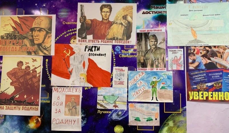 Учащиеся школы постарались отразить героический подвиг советских войск на своих рисунках.