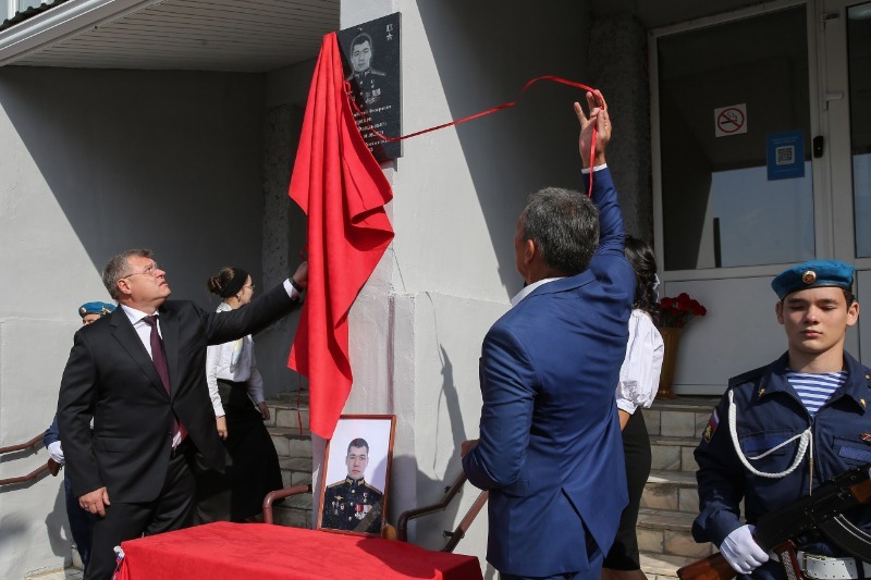 В мероприятии приняли участие губернатор Астраханской области Игорь Бабушкин и глава Приволжского района Дмитрий Мазаев. Вместе с Фаилем Бердиевым, отцом геройски павшего воина, глава региона открыл мемориальную доску на фасаде школы. На ней увековечено имя солдата.